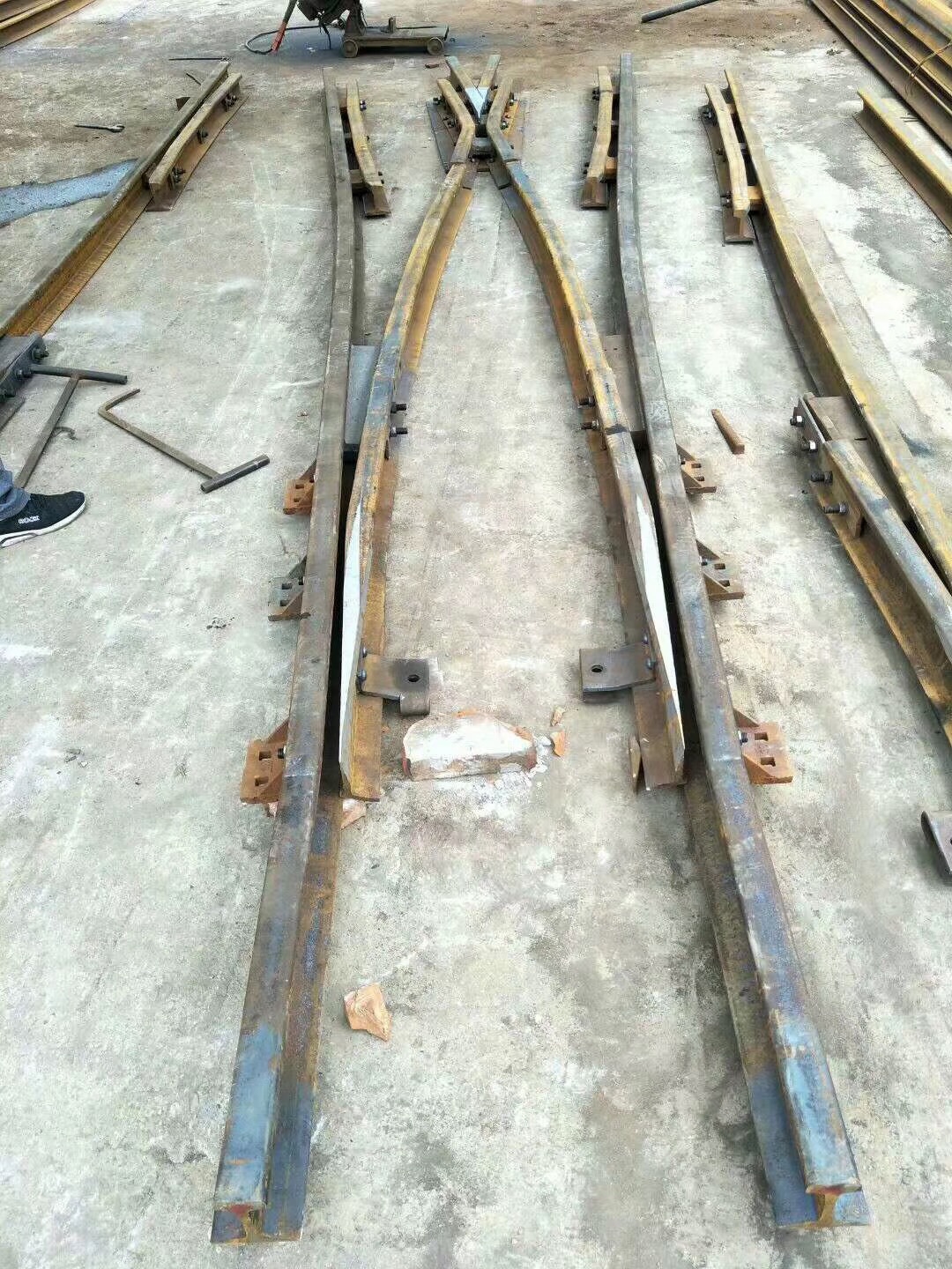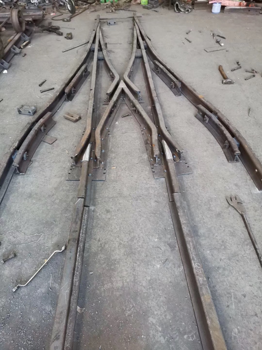 在上世紀(jì)六十年代林州人民(原林縣),自力更生,艱苦奮斗,在非常艱難困苦的歲月里,修造了舉世聞名的“人造天河”紅旗渠,被譽為世界八大奇跡之一,在新世紀(jì)的今天,林州兒女踏著前輩的足跡,發(fā)揚紅旗精神,繼續(xù)前進,為振興經(jīng)濟中原崛起,在原來的基礎(chǔ)上不斷創(chuàng)新發(fā)展,使企業(yè)躍上了新的臺階。 我公司為上新產(chǎn)品整鑄道岔,斥巨資擴建廠房,引進設(shè)備,聘請人才,特聘(原煤炭部北京設(shè)計研究院)道岔專家胡工為我公司技術(shù)總監(jiān),特聘鐵道部寶雞橋梁廠鑄造專家王工為質(zhì)檢總監(jiān),經(jīng)過多方努力,無數(shù)次的試驗,整鑄道岔于2003年終于試制成功,并已批量生產(chǎn)投放市場,受到了各用戶的一致好評和青睞。 拼裝道岔是用螺拴和鉚釘連接在一塊的,使用后經(jīng)礦車往來的軋壓和雨水的腐蝕,很容易出現(xiàn)螺帽脫落,鉚釘松動,造成機芯解體或損壞,而影響了正常的生產(chǎn)運輸和造成重大安全隱患,而整鑄道岔機芯是高溫一次澆鑄成型,經(jīng)粹火,正火等多道工藝處理,其金相組織結(jié)構(gòu)嚴(yán)密,抗拉抗沖擊性能極高。它是由多種元素組成的低合金剛,耐磨系數(shù)是普通拼裝機芯的4倍,從而大大降低了使用單位的生產(chǎn)成本,減少了更換、保修、保養(yǎng)等麻煩,整鑄道岔的優(yōu)點再者就是承受能力大,運行速度快,使礦進的運輸量大幅度的提升、整鑄道岔的安全性能很好,因為它是一次性澆鑄成型的,在設(shè)計和生產(chǎn)過程咽喉部位已加高和加厚(俗稱道岔的有害空間),排除了車輪通過此段掉道的弊端,因此使礦車的速度大幅度提高,為使用單位多創(chuàng)了良好的經(jīng)濟利益。